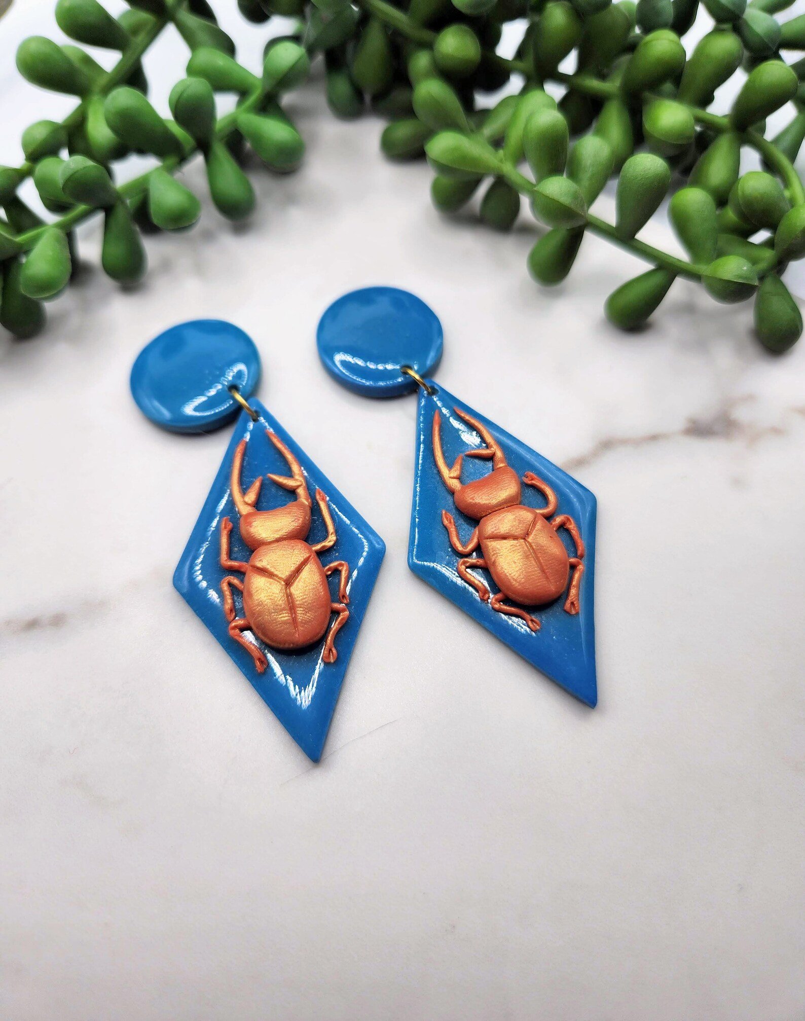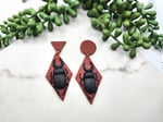 Lightweight polymer clay earrings on a geometric background, perfect for the insect aficionado in your life. The earring tops can be mis-matched, both circles, or both triangles. Let me know what you'd prefer in your order notes!